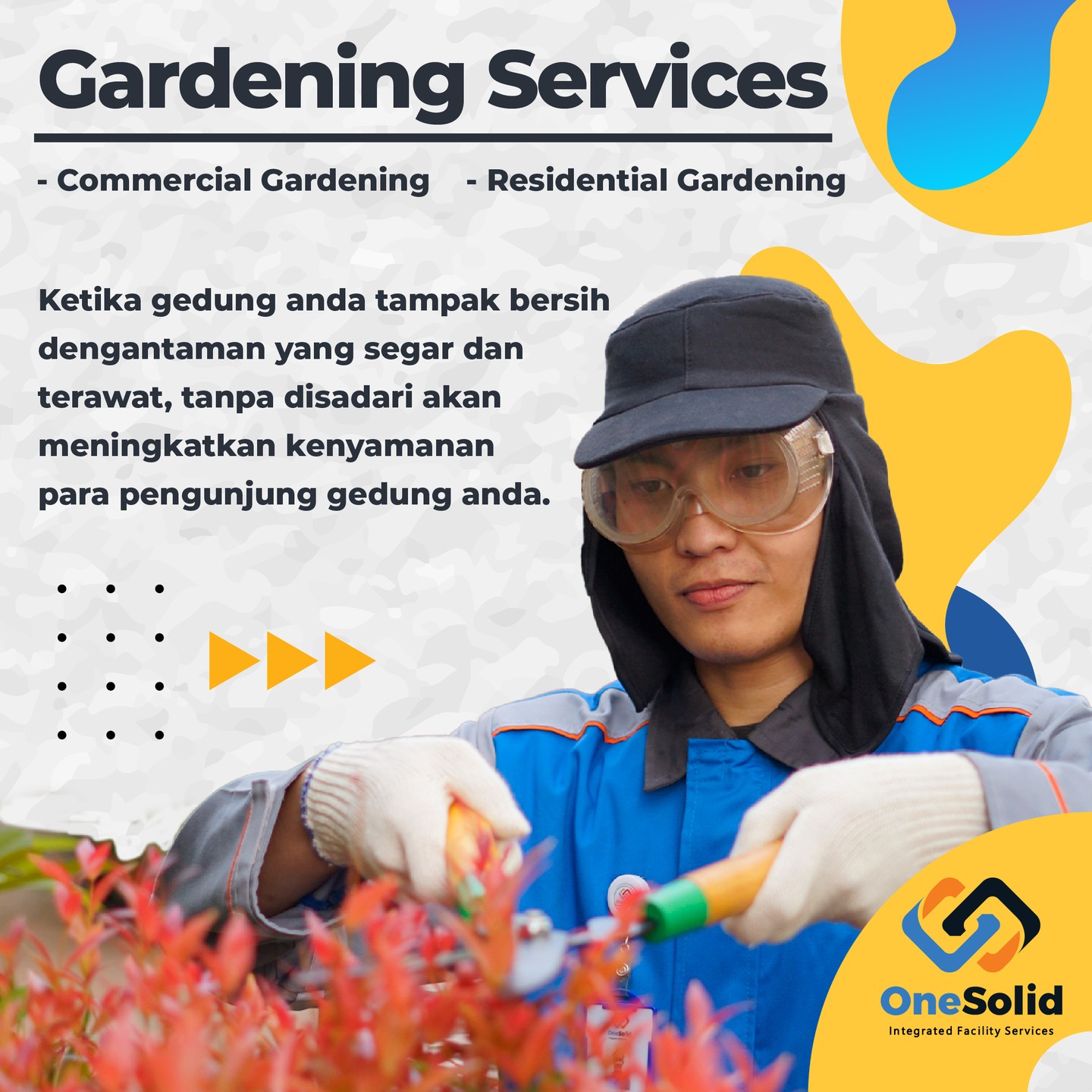 OneSolid Gardening Service menyediakan pelayanan perawatan taman yang menjadi tampilan pertama yang dilihat pengunjung ketika datang ke rumah dan atau gedung anda.